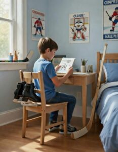 When illness strikes the hockey team members, your child takes their place and saves the game! The game is intense and goes into overtime after the third period. Finally, the coach calls your child in during the final minutes to save the game!